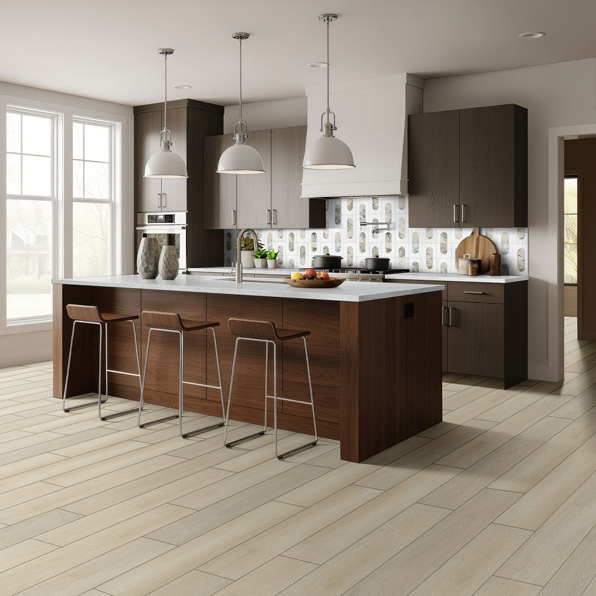 Vintaj Luxury Vinyl Planks showcase a light blonde hue with subtle knots and grains, offering a soft, natural look that brightens any space. These 7” x 48” waterproof planks feature enhanced beveled edges for detailed, refined look. A robust 20 MIL CrystaLux Ultra™ protection layer withstands daily wear and tear with exceptional durability. With a no-acclimation, click-lock system, it’s ready for easy same-day installation. Perfect for kitchens, bathrooms, basements, and more, Vintaj delivers luxurious style and durability for any residential or commercial space. Backed by a lifetime limited residential warranty, along with 15-year light commercial and 10-year commercial warranties, this flooring is built to last.
