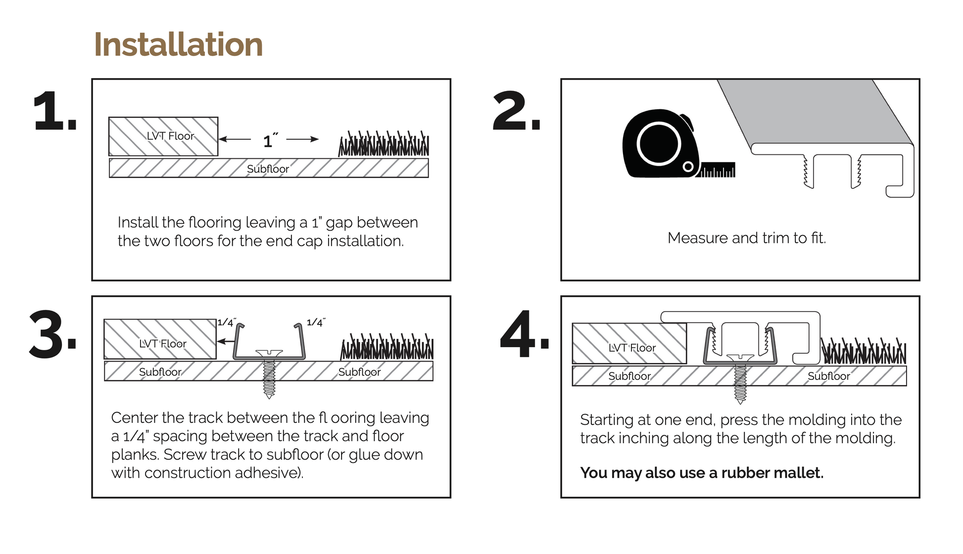 End caps are used to fill the gap between the floor and carpet, hearths or against sliding doors.