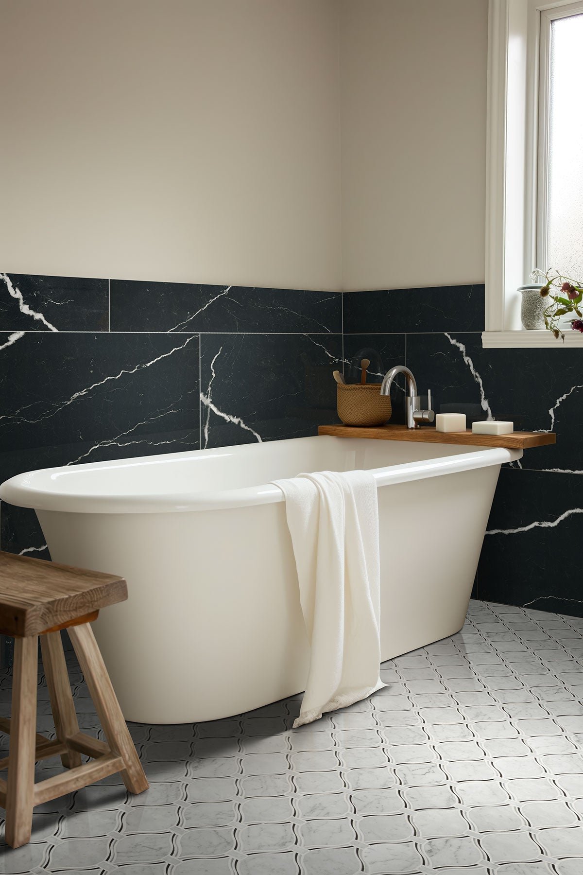 Step into the captivating allure of Soho Noir Porcelain Tile, featuring expansive dimensions of 24” x 48” that command attention. Skillfully crafted to showcase the mesmerizing beauty of onyx, this tile captivates with its black backdrop accentuated by striking white veins. Perfect for enhancing both floors and walls in residential and commercial settings, its precisely cut rectified edges ensure seamless installation and minimal grout visibility. With a polished finish that radiates sophistication, this tile effortlessly balances aesthetic appeal with practicality. Easy to install while delivering impeccable results, it stands out as a versatile option for any interior design project, enriching spaces with enduring elegance.