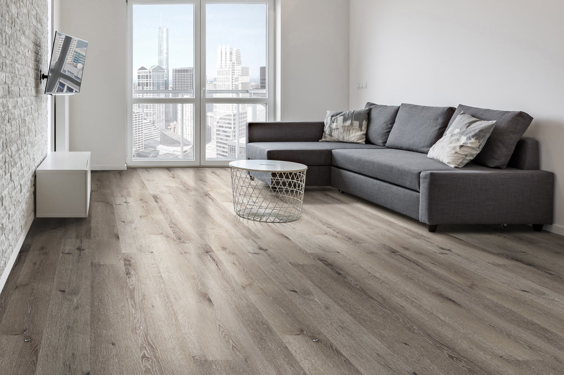 Charcoal Oak Luxury Vinyl Tile features a backdrop of greys and greiges, accented by subtle graining and knots for an authentic wood look in a low-maintenance 6x48” luxury vinyl plank. This beautifully neutral glue-down product is suitable for all grade-levels, so feel confident using it throughout your home—even in the basement. Supremely durable, low-maintenance, and gorgeous, Charcoal Oak is perfect for busy families who don’t want to sacrifice style for practicality. Find coordinating vinyl flooring trim pieces below. Available trim items include end caps, stair noses, reducers, and T-molding.