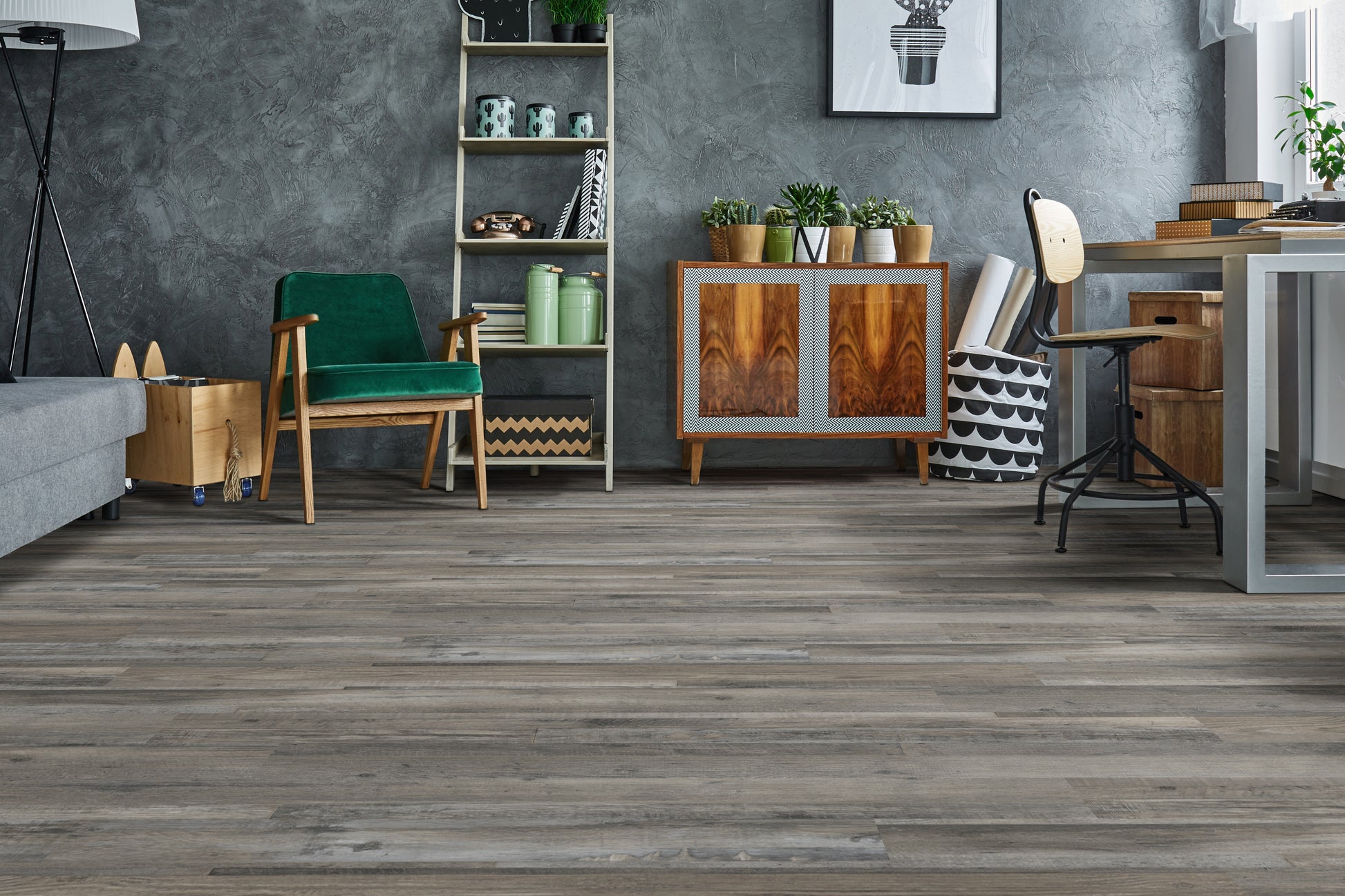 Coastal Mix Luxury Vinyl Tile features a dusky grey palette with darker knots and graining for an authentic weathered-wood look in a 6x48” low maintenance flooring. This beautiful glue-down vinyl plank is suitable for all grade-levels, so feel confident using it throughout your home—even in the basement. Supremely durable and gorgeous, Coastal Mix vinyl flooring is perfect for busy families who don’t want to sacrifice style for practicality. Find coordinating vinyl flooring trim pieces below. Available trim items include end caps, stair noses, reducers, and T-molding.