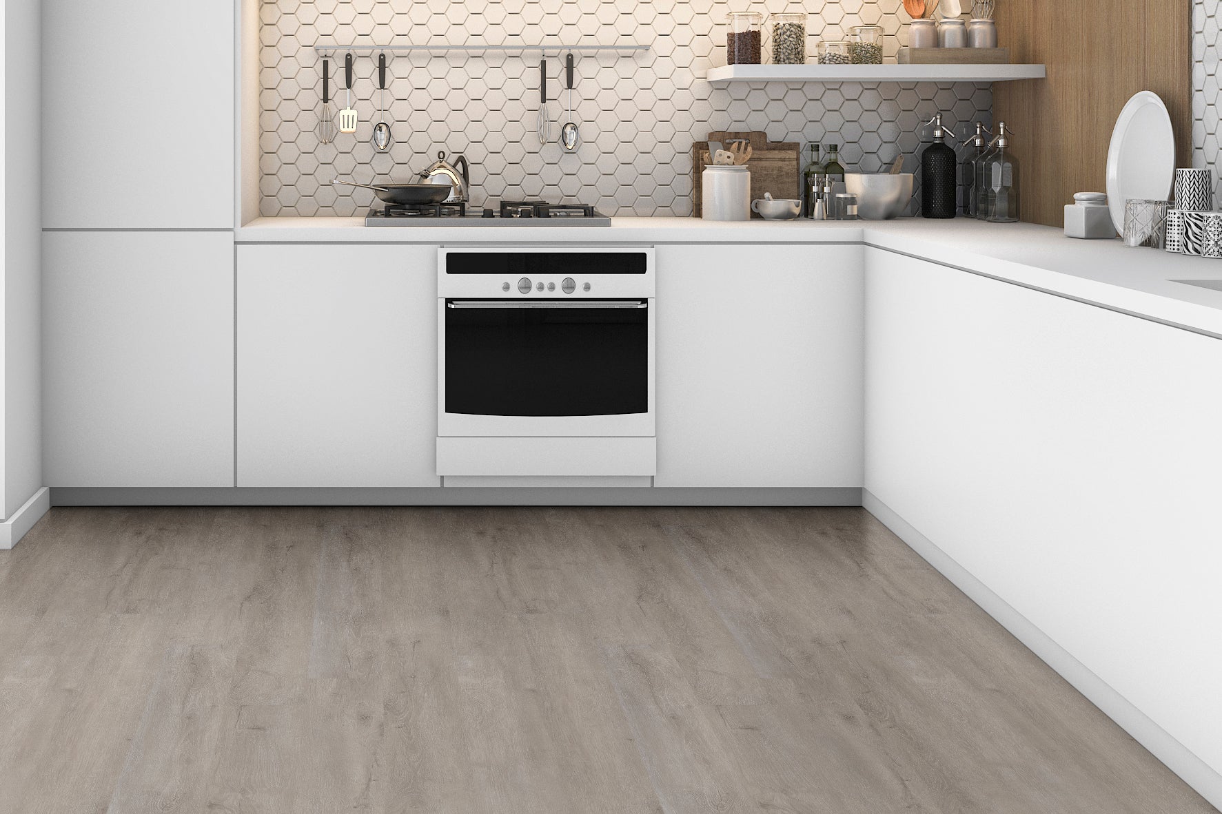 Twilight Oak Luxury Vinyl Tile features a soft gray background with swaths of white, complete with barely there knots and graining for an authentic weathered-wood look in a 6x48” low-maintenance vinyl plank flooring. This beautiful glue-down LVT flooring is suitable for all grade-levels, so you can feel confident using it throughout your home—even in the basement. Supremely durable, low-maintenance, and gorgeous, Twilight Oak vinyl planks are perfect for busy families who don’t want to sacrifice style for practicality. Find coordinating vinyl flooring trim pieces below. Available trim items include end caps, stair noses, reducers, and T-molding.