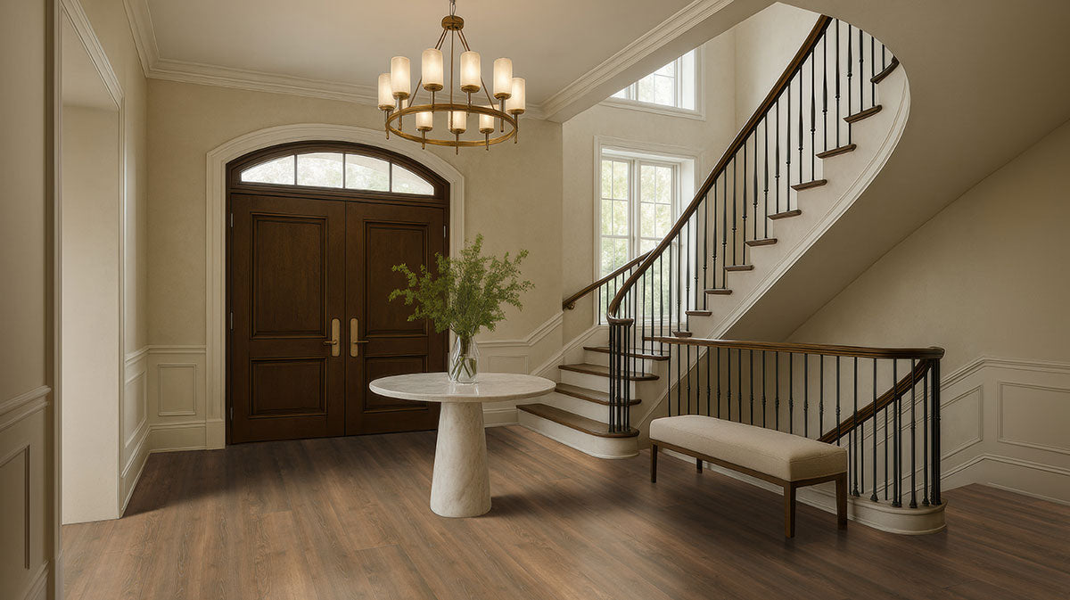 Roghan from the Shorecliffs™ Collection brings the depth and richness of high-end hardwood into waterproof, scratch-resistant hybrid rigid core flooring built for daily life. These 9" x 87" planks showcase warm brown tones and long, refined lines that channel the look of carefully curated natural wood. The UltraMatte finish gives the surface a smooth, low-sheen appearance, while the EIR texture adds definition and visual interest. Built for performance, the AC5-rated CrystaLux Ultra™ wear layer defends against scratches, dents, and wear, while the 100% waterproof DryLuxe™ core provides strength you can count on. With a comfort pad and quick click-lock installation, Roghan brings bold character with lasting durability.