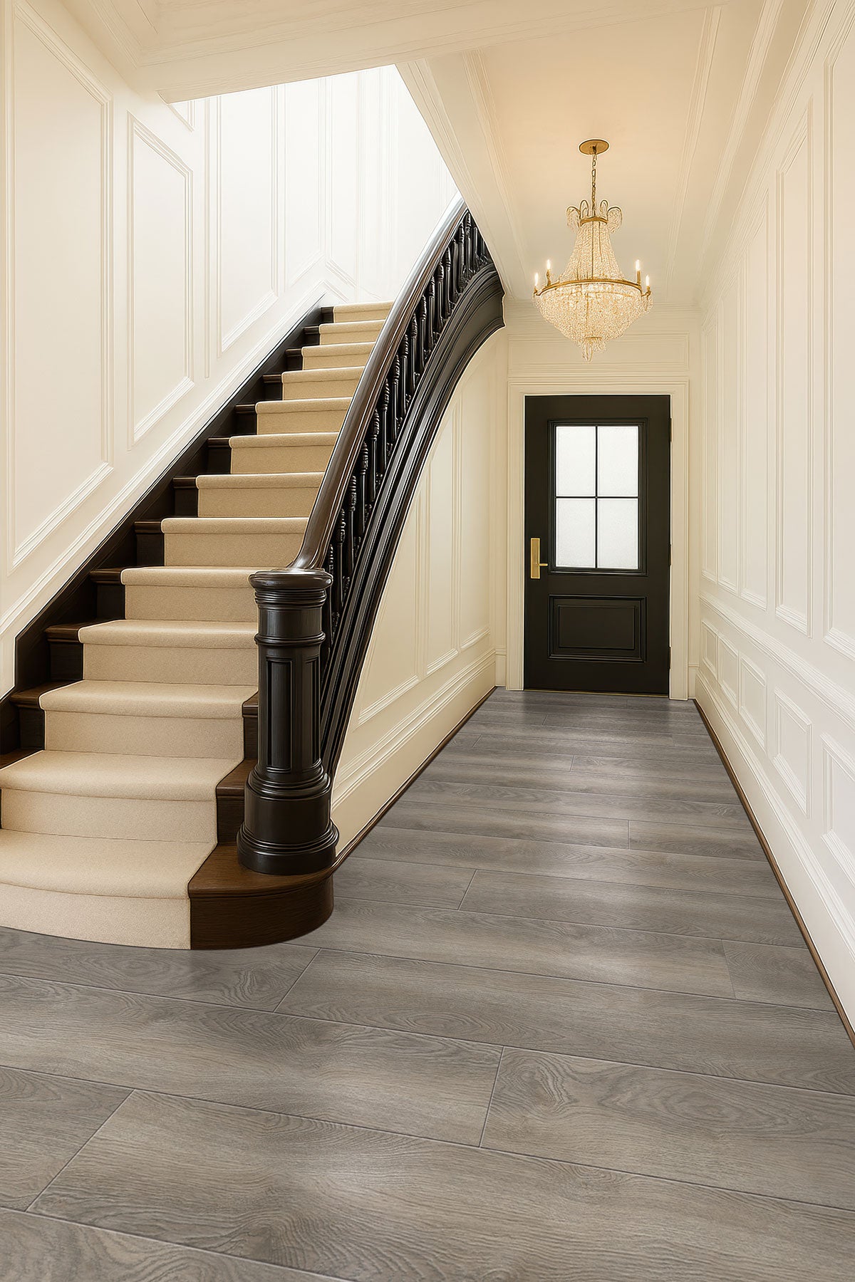 Wixom Valley from the Shorecliffs™ Collection reflects the luxurious feel of hardwood in waterproof, scratch-resistant hybrid rigid core flooring made for everyday durability. These 9" x 87" planks showcase mid-tone brown hues and long, refined lines that echo the look of carefully curated natural wood. The UltraMatte finish gives the surface a soft, low-sheen appearance, while the EIR texture brings incredible depth and character. With an AC5-rated CrystaLux Ultra™ wear layer to protect against scratches, dents, and wear—and a 100% waterproof DryLuxe™ core—this plank is engineered to perform in every room. An attached comfort pad and quick click-lock installation make Wixom Valley as functional as it is design-driven.