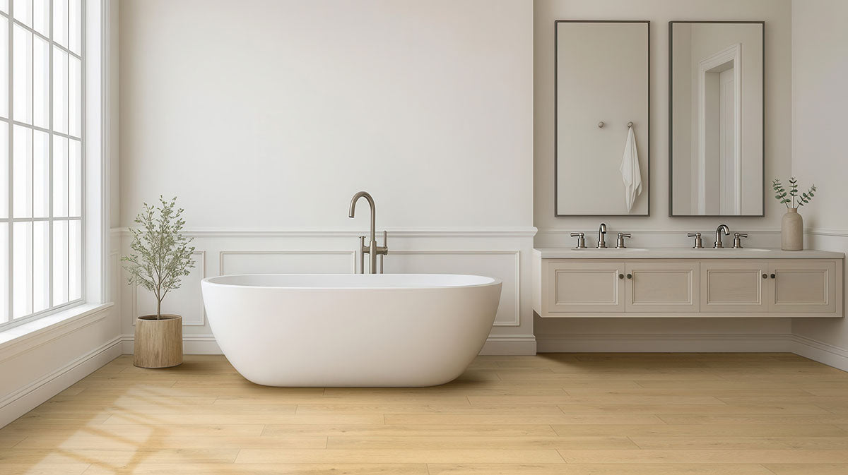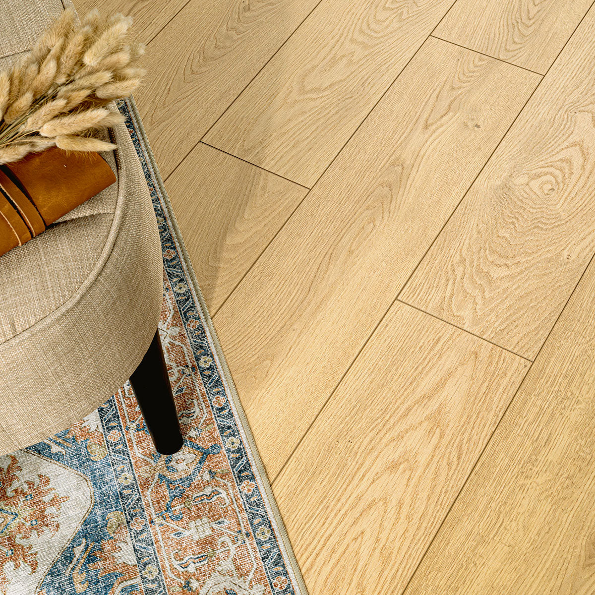 Embrace natural radiance and lasting performance with Smithcliffs™ Doverville Hybrid Rigid Core Flooring from the Everlife® Collection. Defined by its warm golden blonde hues and subtle wood-grain detailing, Doverville brings a bright, inviting energy to any space while maintaining the look of genuine hardwood. Each 7.5” x 50” plank is enhanced with a refined beveled edge that adds realistic depth and dimension. Engineered with advanced DryLuxe™ waterproof technology, it is also fortified by a AC4-rated (22 MIL equivalent) CrystaLux Ultra™ protective layer and provides the best scratch resistance in rigid core flooring. A pre-attached 2MM closed-cell pad ensures excellent sound absorption and a cushioned underfoot feel, while the patented locking system allows for easy, secure installation. Backed by a lifetime limited residential warranty, and a 15-year light commercial and 10-year commercial warranty, Doverville delivers the perfect blend of looks and durability for kitchens, bathrooms, living rooms, and beyond.