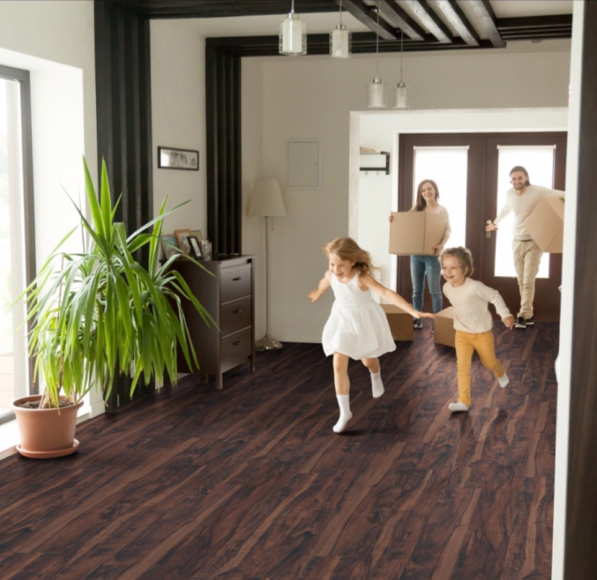 Burnished Acacia Luxury Vinyl Tile features the deepest, richest dark browns and gorgeous graining for an authentic wood look in low-maintenance 6x48” and 7x48” luxury vinyl planks. This beautiful glue-down LVT flooring is suitable for all grade-levels, so feel confident using it throughout your home—even in the basement. Supremely durable, low-maintenance, and gorgeous, Burnished Acacia is perfect for busy families who desire quality vinyl wood flooring. Find coordinating vinyl flooring trim pieces below. Available trim items include end caps, stair noses, reducers, and T-molding.