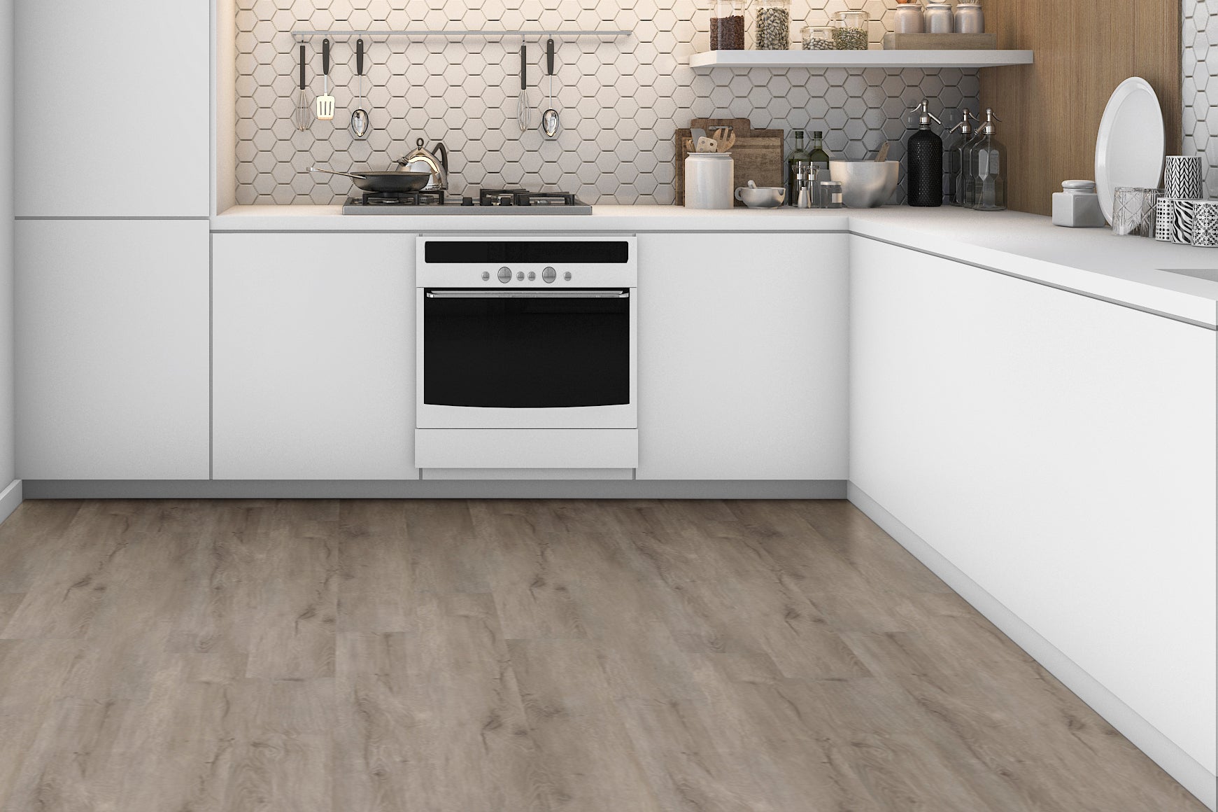 Twilight Oak Luxury Vinyl Tile features a soft gray background with swaths of white, complete with barely there knots and graining for an authentic weathered-wood look in low-maintenance flooring. These 6x48” and 7x48” glue-down luxury vinyl planks are suitable for all grade-levels, so you can feel confident using them throughout your home—even in the basement. Supremely durable and gorgeous, Twilight Oak vinyl plank flooring is perfect for busy families who don’t want to sacrifice style for practicality. Find coordinating vinyl flooring trim pieces below. Available trim items include end caps, stair noses, reducers, and T-molding.